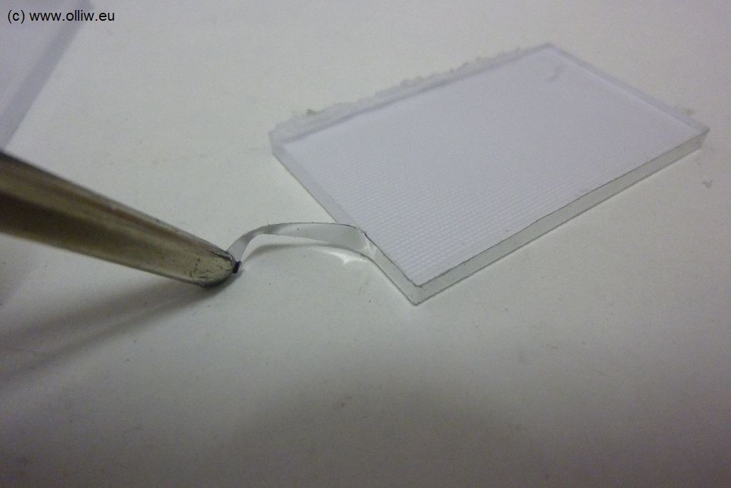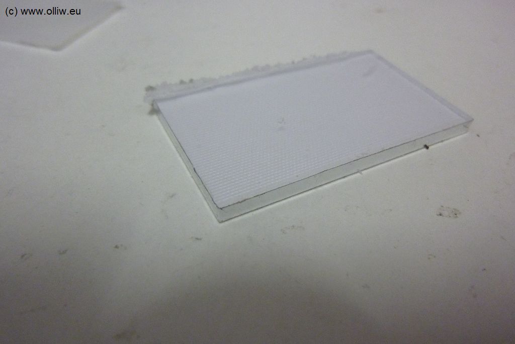Ganz klar, der mechanische Teil der Arbeit hätte mir besser gelingen können; ein schöner gerader Rand auf der linken Seite ist nicht völlig unmöglich, und der Plexiglassträger sollte auch nicht unter der Abdeckfolie hervorlugen. Also, hätte besser werden können, aber für den Moment taugt’s mir, vielleicht wann Anders…