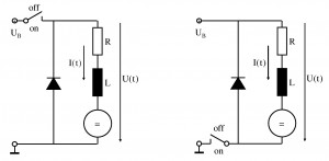der Motorwicklungen, die im Gegensatz zum Gleichstrombetrieb beim PWM Betrieb nun eine Rolle spielt, und zum anderen an der Freilaufdiode, welche in jeder PWM Schaltung vorzusehen ist (um Überspannungen wiederum aufgrund der Motorinduktivität zu vermeiden).
