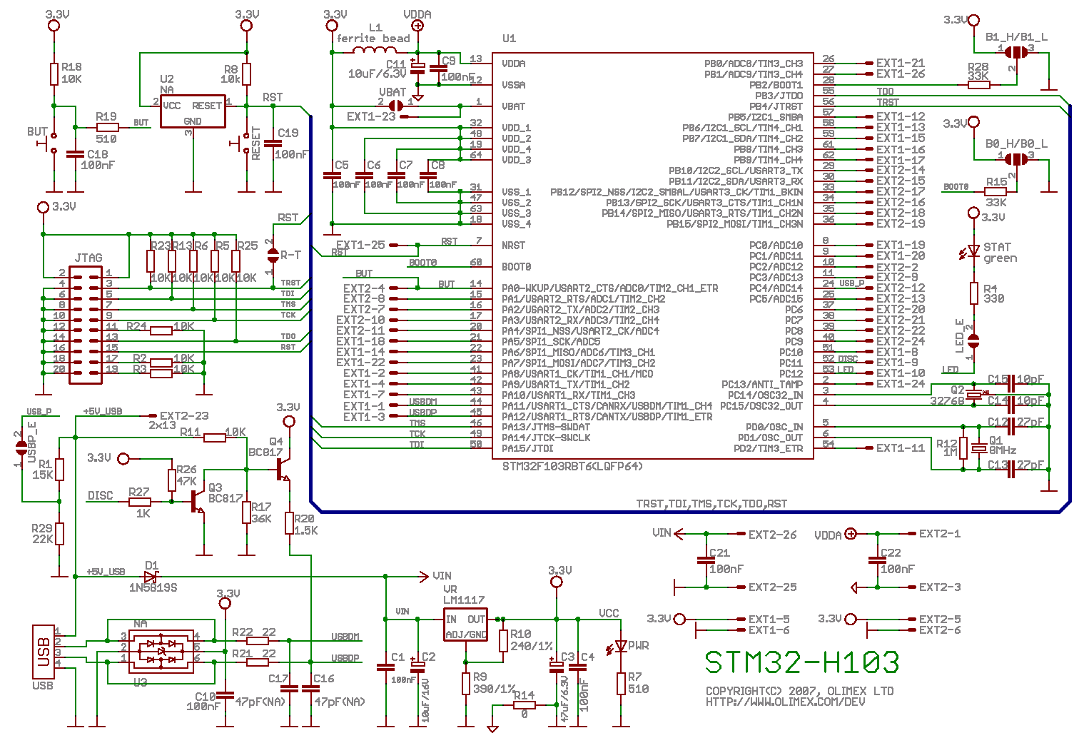 1.6. Olimex STM32-H103 STM32F103RB Entwicklungsboard