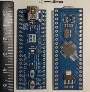 Das ist ein durchaus gelungenes Board. Aber: Es ist nicht wirklich billig, es verwendet einen riesigen USB Typ-B Anschluss, und die Pins sind nicht beschriftet. Letzteres macht die Benutzung ziemlich mühselig. Ich habe mir daher ein Blatt mit der Pinzuordnung erstellt, welches für mich unentbehrlich geworden ist, und welches Ihr unten findet.