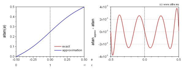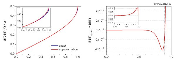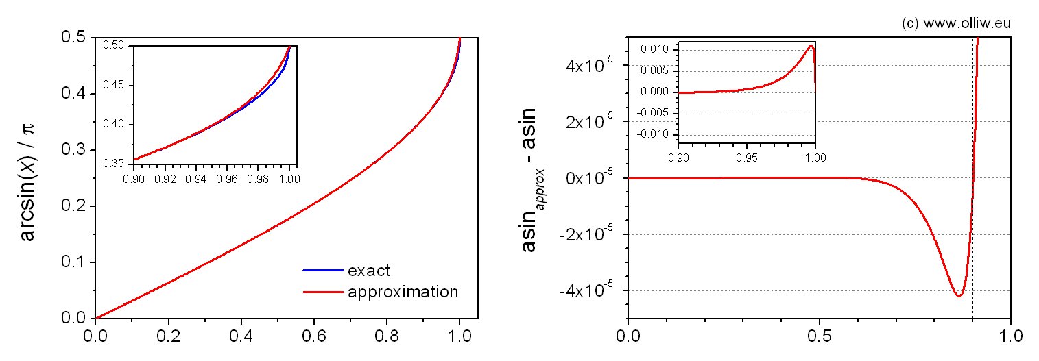 , and accordingly astonishingly simple and yet surprisingly accurate approximations are found on the web. The rational polynomial approximations I found most notable (e.g. here, here, here, here). However, it’s somewhat cumbersome to extend them to match my accuracy requirements, and they involve a division. So, I went with the „traditional“ approach of using a polynom.