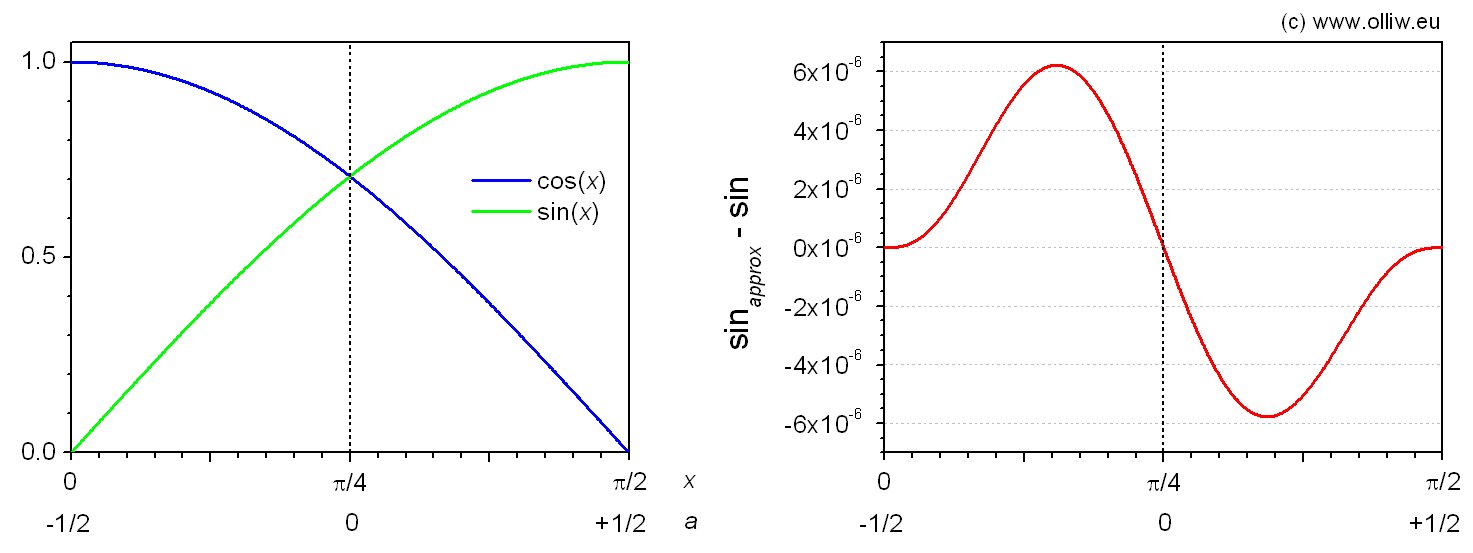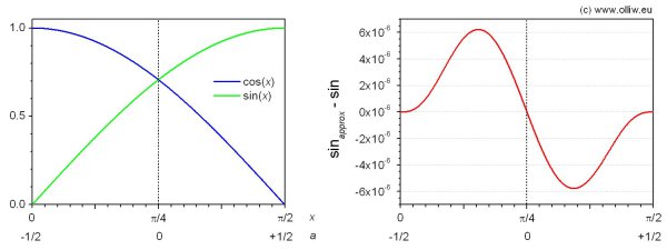 ). The rational is that the polynomial approximation for the cosine can then be obtained from the sine approximation by simply reversing the signs of the odd terms. Both the sine and cosine are thus obtained for free, i.e. by simple subtraction and addition of the even and odd parts of the polynomial.