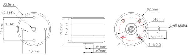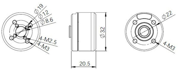 shaft diameter: 4 mm, hollow shaft with 2.5 mm diameter