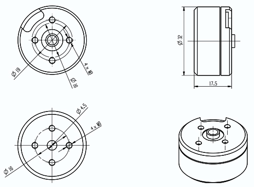 shaft diameter: ? mm, hollow shaft with 4 mm diameter