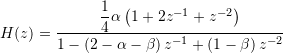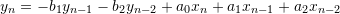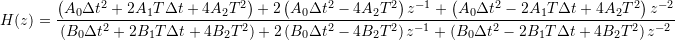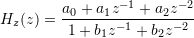 A common implementation of second-order filters uses a biquad. The transfer function is