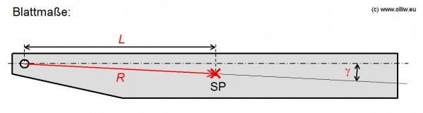 : „echter“ Abstand des Blattschwerpunkts von der Blattwurzel