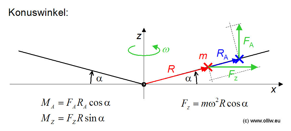 nicht über ein Kräfteparallelogram bestimmen, sondern müssen die jeweiligen Drehmomente betrachten. Der Konuswinkel ergibt sich dann aus dem Drehmomentgleichgewicht