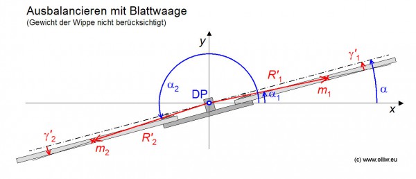 Noch ein kurzes Wort zu den Blattwaagen, siehe auch das nächste Bild. Die obigen „theoretischen“ Überlegungen gelten genauso, wenn die Winkel