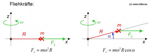 , dann wirkt natürlich auch eine Fliehkraft. Diese geht allerdings senkrecht von der Drehachse weg, und die Stärke der Fliehkraft ergibt sich daher zu