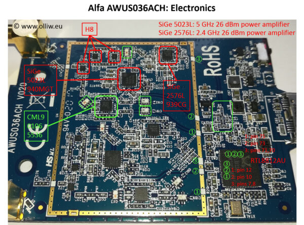 - From the data sheet of the used 5 GHz power amplifiers one should expect high power of 400 mW (26 dBm). Sources in the web list them as 500 mW cards. But note that the 26 dBm are nominally per antenna (!).