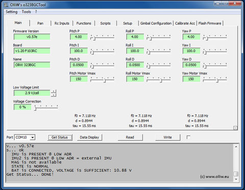 Before that, we will have to set the Motor Vmax parameter, which also affects the tuning. Fortunately, it is relatively easy to adjust and not too critical (unless the gimbal tends to vibrations at certain gimbal postions).