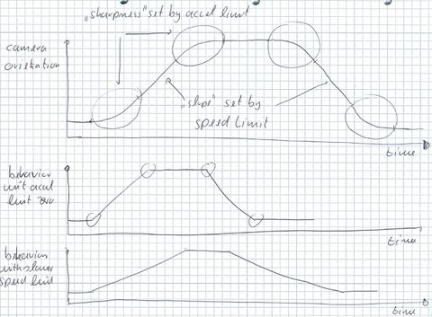 The response of the camera to an input signal, e.g. a movement of a transmitter stick, is determined by these parameters: