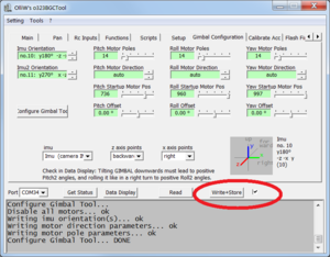 Comment: Since v0.57e a new [GUI:Configure Gimbal Tool] is implemented, which further simplifies setup enormously (see Quick Start Guide). The steps described here are now integrated into the new [GUI:Configure Gimbal Tool].