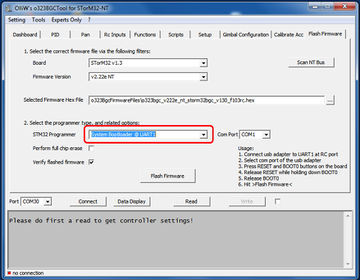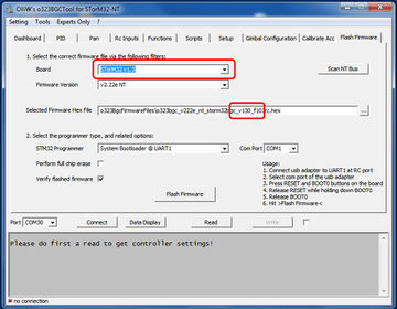 How to flash v1.x STorM32 boards