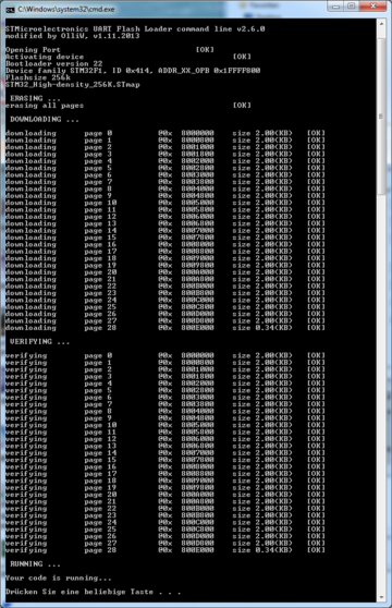 14. Now a black DOS box will open and a sequence of downloading and verifying the firmware is shown, if everything is OK.