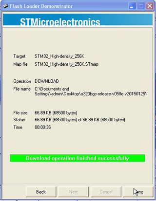 15. After the flashing is completed, the STorM32 board is reset and will start running. It is now fully operational and you may disconnect the USB-TTL adapter.
