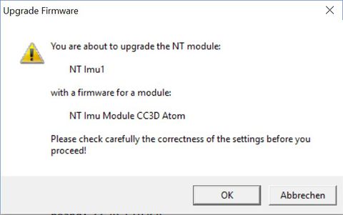 Comment: Upgrading implies that the NT module has a NT firmware running. If the NT module has never been flashed with a NT firmware before, or runs a different, non-NT firmware, then you must first do a "First-Time Flashing". Please consult the respective wiki pages.