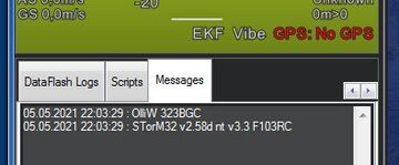 * '''''Message box in MissonPlanner''''': With the GIMBAL component selected, in the message box several text messages related to the STorM32 gimbal should appear. In particular, a message like "STorM32 v2.40 nt v1.30 F103RC" informing about the STorM32 firmware version should be visible.