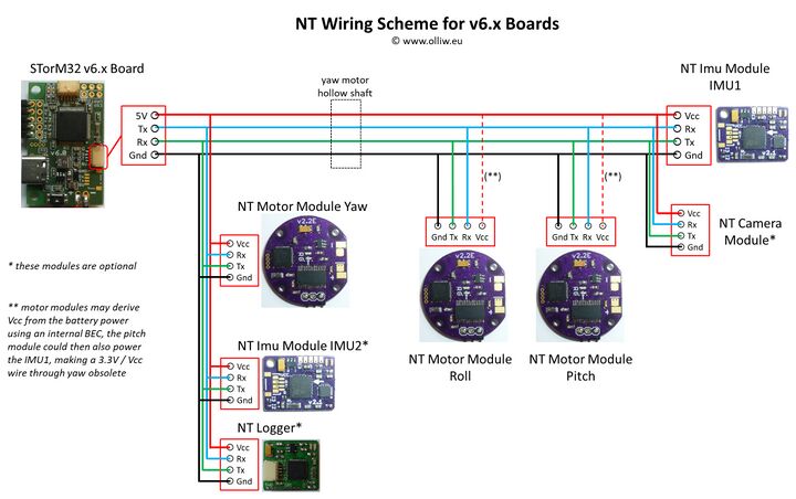 A typical wiring scheme for a v6.2 STorM32 board can look as this: